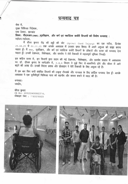 Thanks letter from patient.